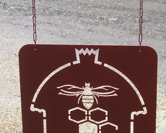 Création et personnalisation de la plaque en fonte avec mise en place sur le poteau.